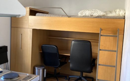 Rue Boissière métro Victor Hugo, studio meublé de 13m2 au 3eme étage avec ascenseur dans un immeuble ancien, petite entrée, séjour avec lit bureau et coin cuisi ...
